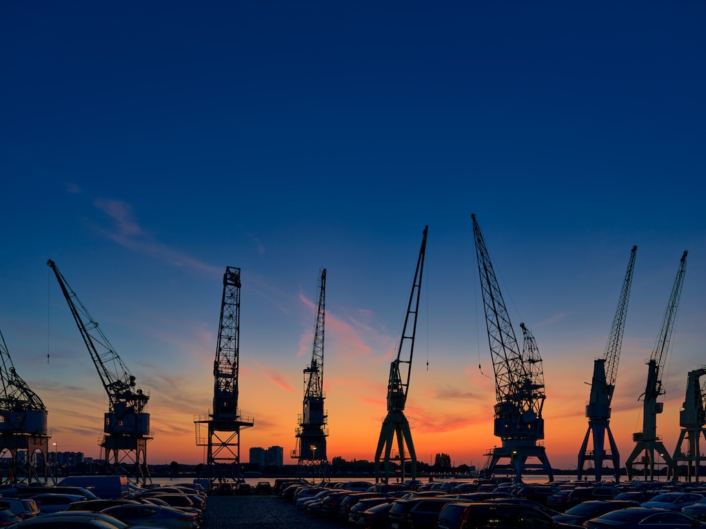 Cranes Silhuettes Published 2024/01/02 at 1024 × 768 in Cranes Silhuettes Harbor cranes, Antwerp | © Jens Stachowitz Old cranes on bank of the river Scheldt shortly after sunset